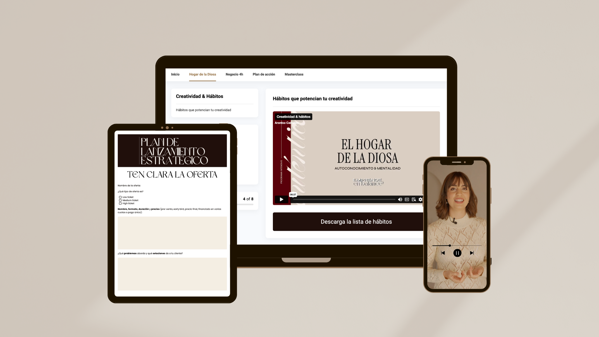 Accederás a los módulos en vídeo con estrategias diseñadas específicamente para emprendedoras que buscan crecer sin renunciar a su libertad.